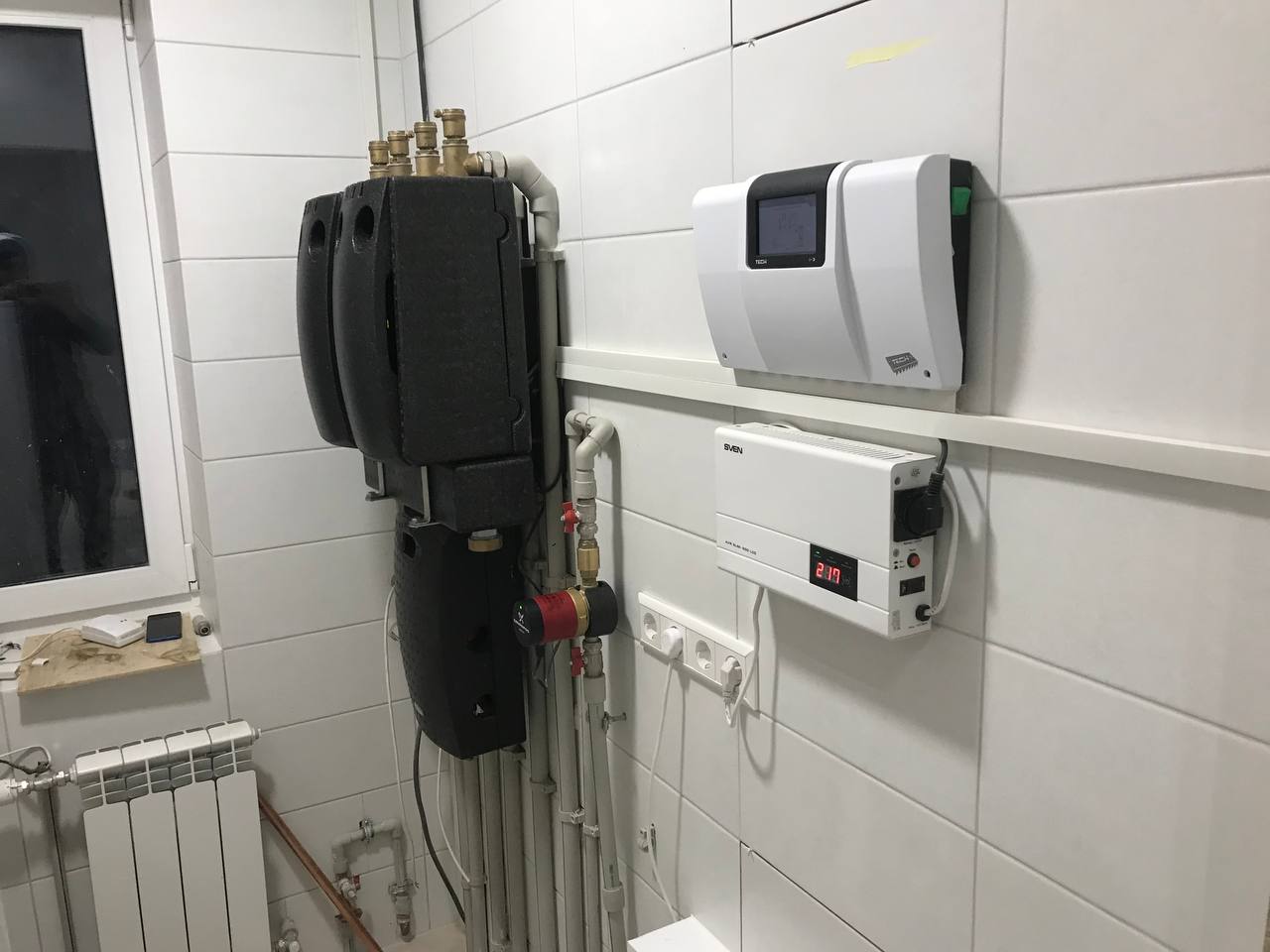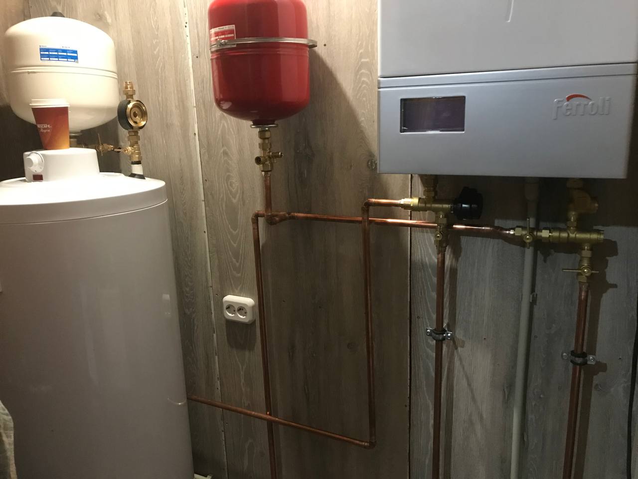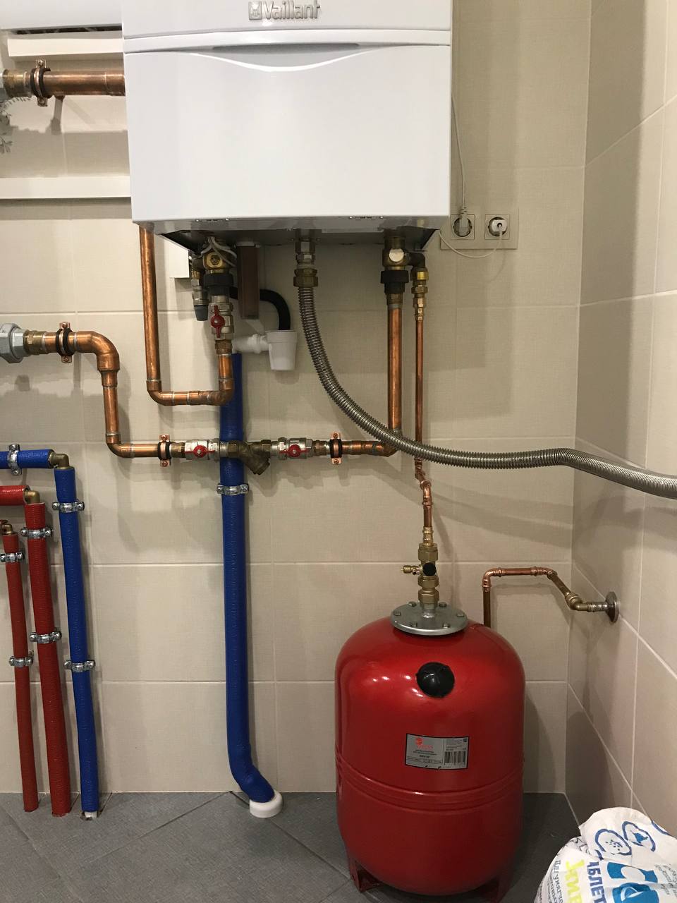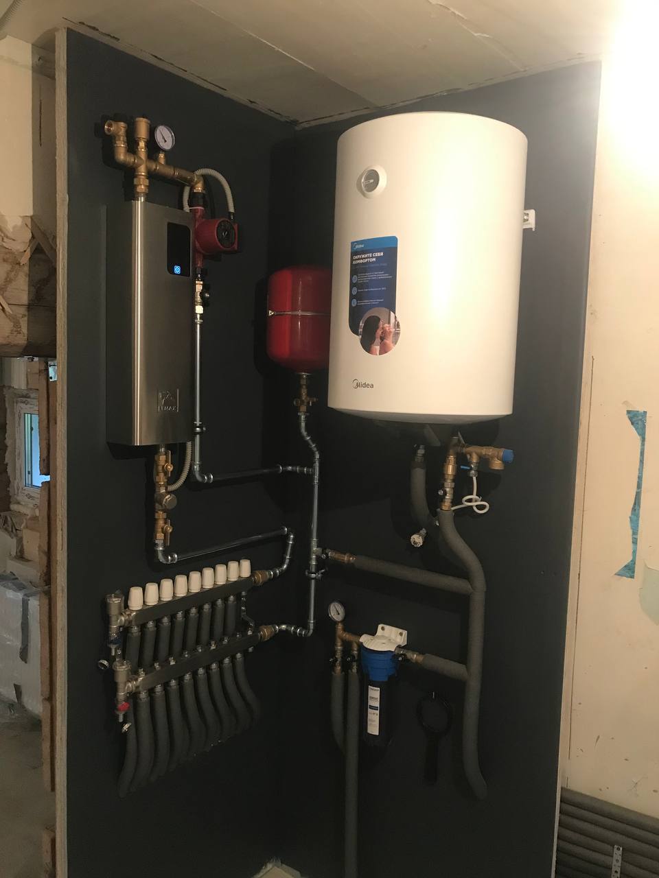 | Монтаж настенного электрического котла с обвязкой запорной арматурой |