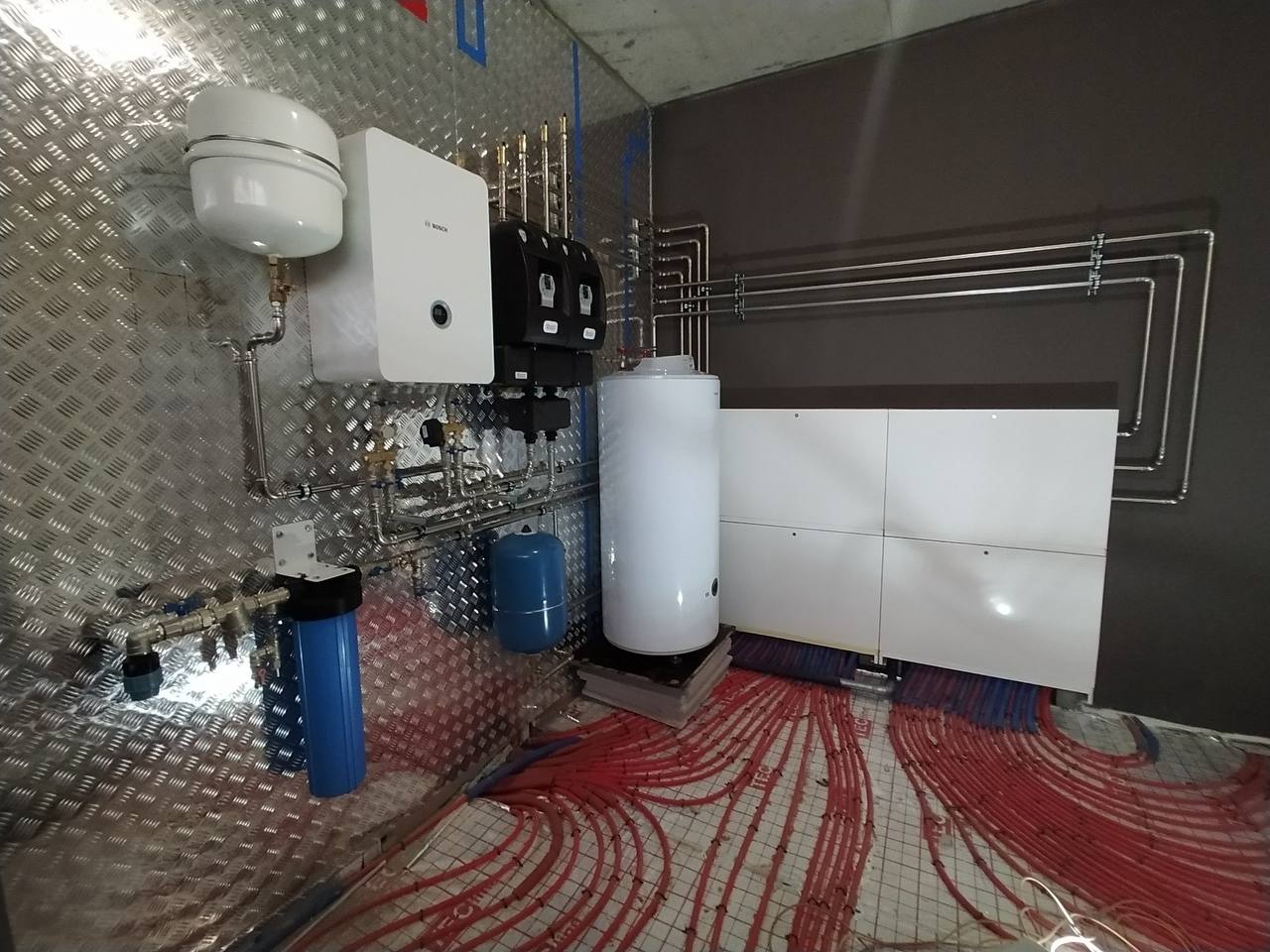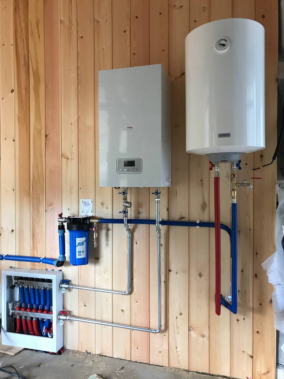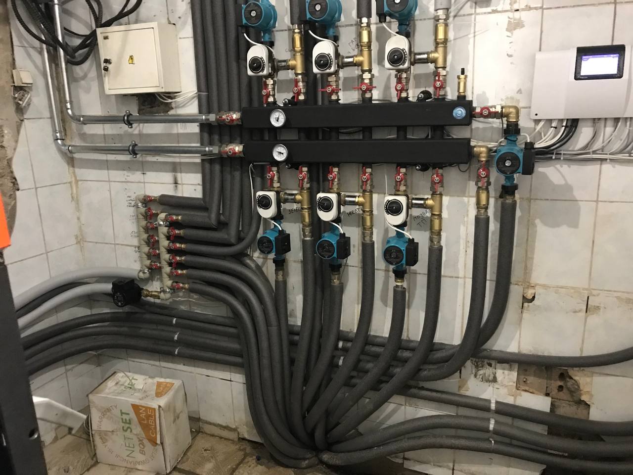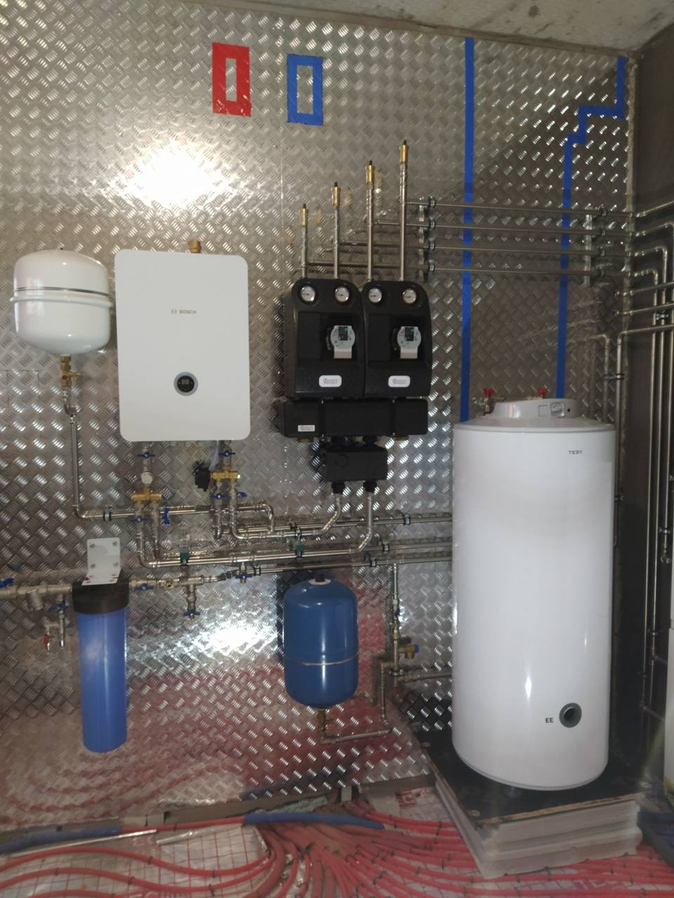 | Монтаж настенного электрического котла с обвязкой запорной арматурой |