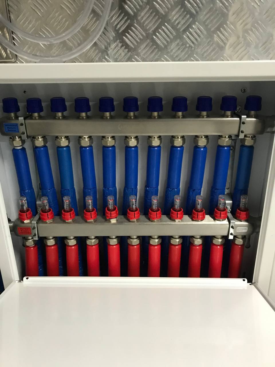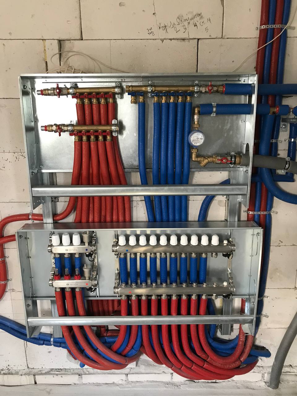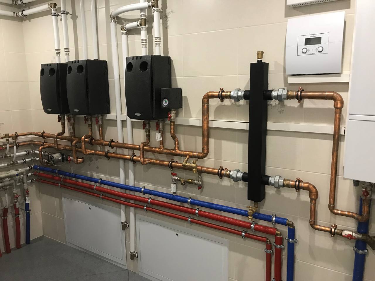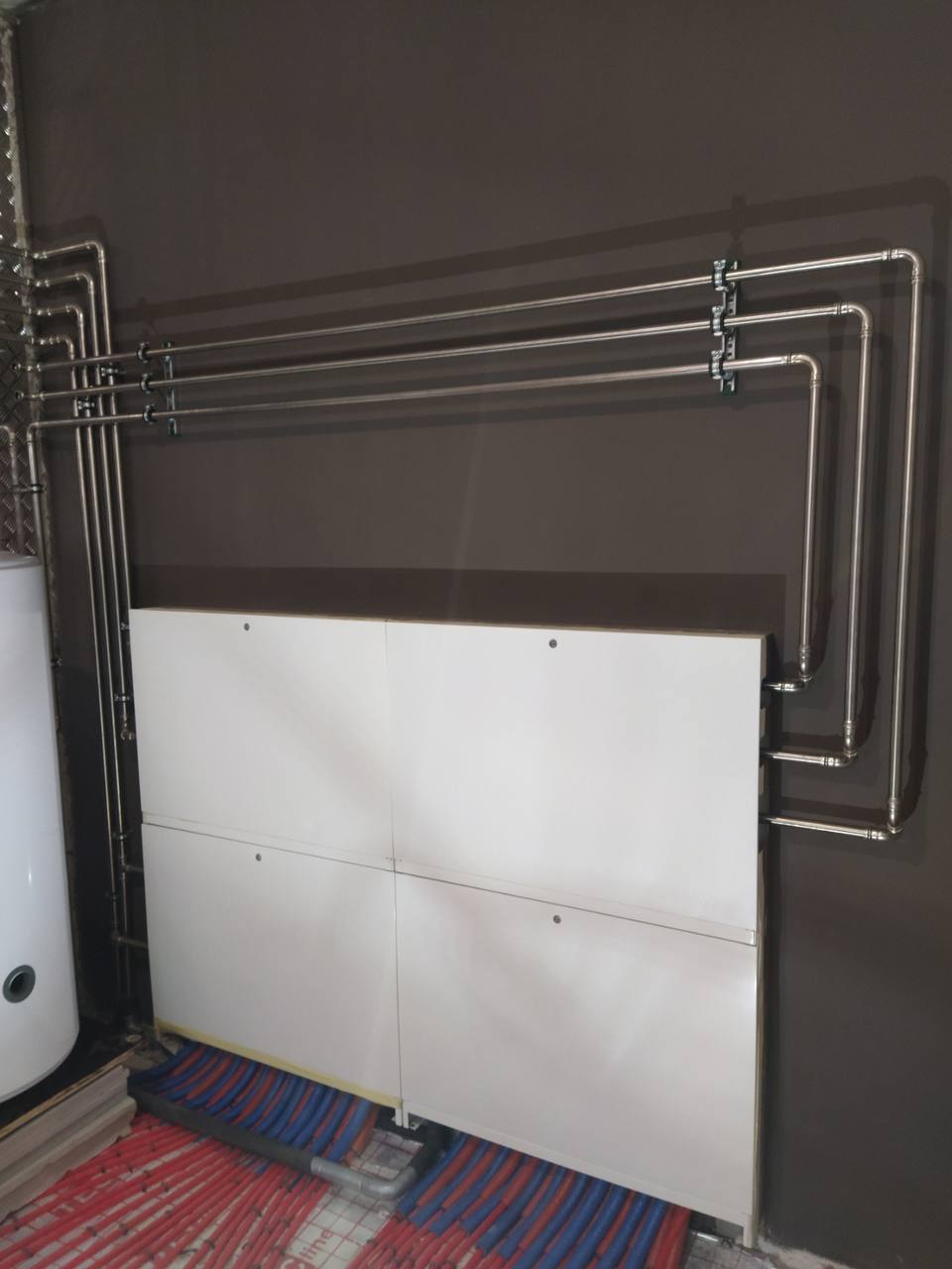 | Монтаж и подключение распределительного коллектора отопления, водоснабжения с подключением магистральных труб и обвязкой запорной арматурой |