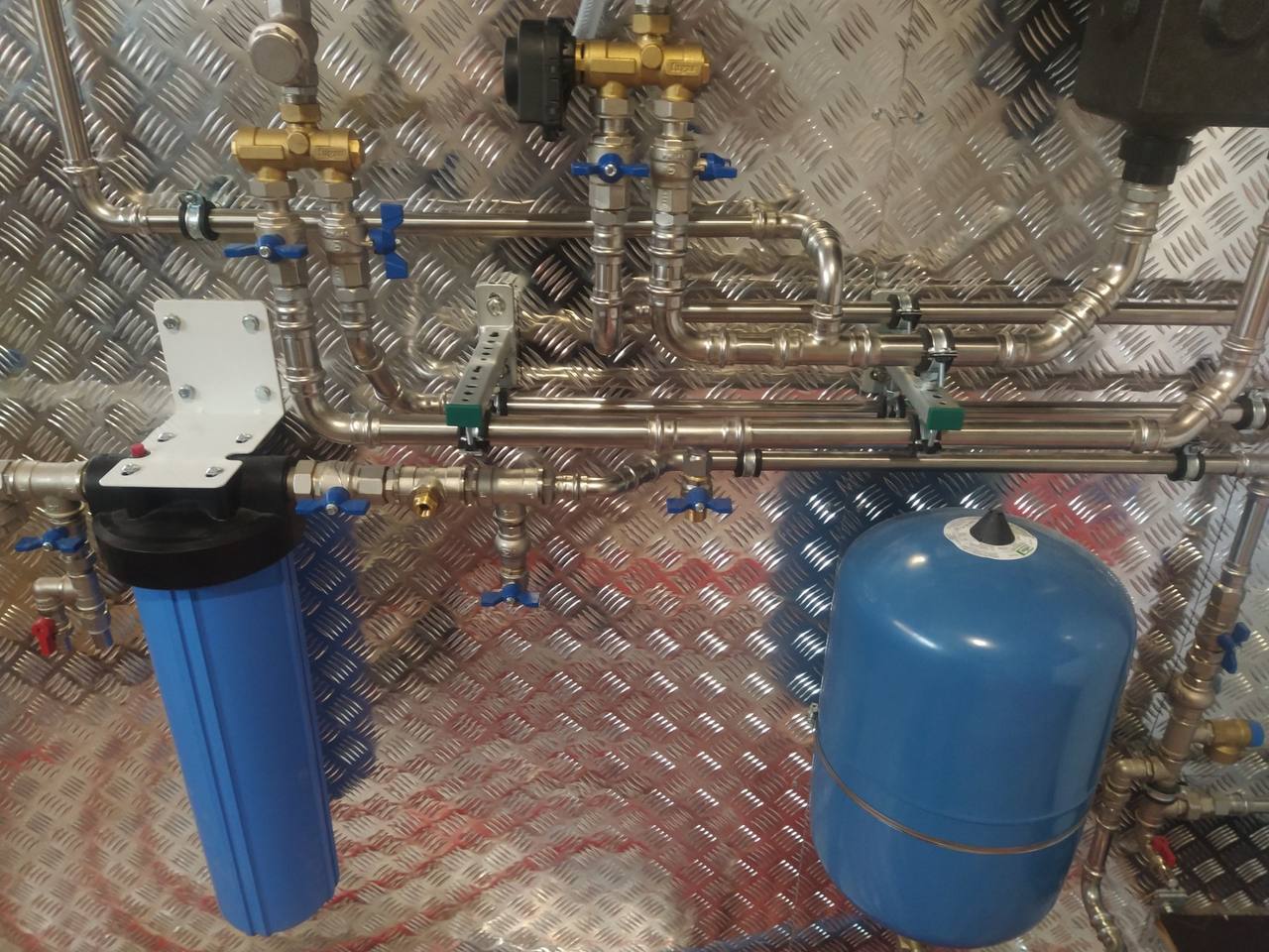 | Монтаж редуктора давления, компенсатора гидроудара |