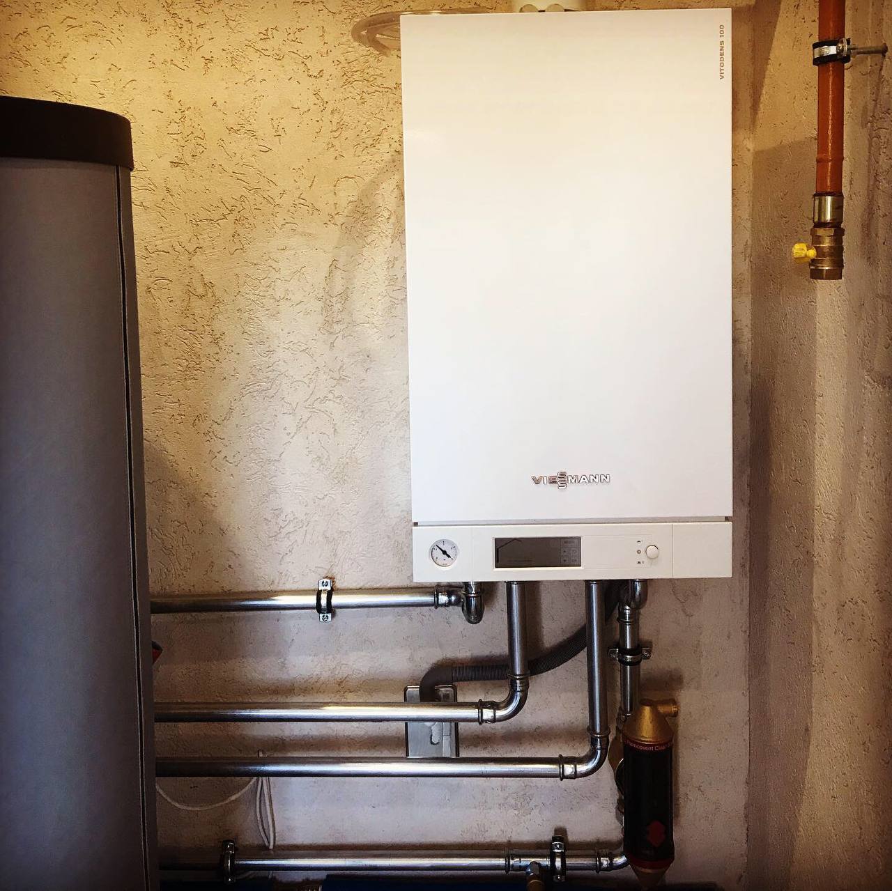 | Монтаж напольного газового котла с обвязкой запорной арматурой |